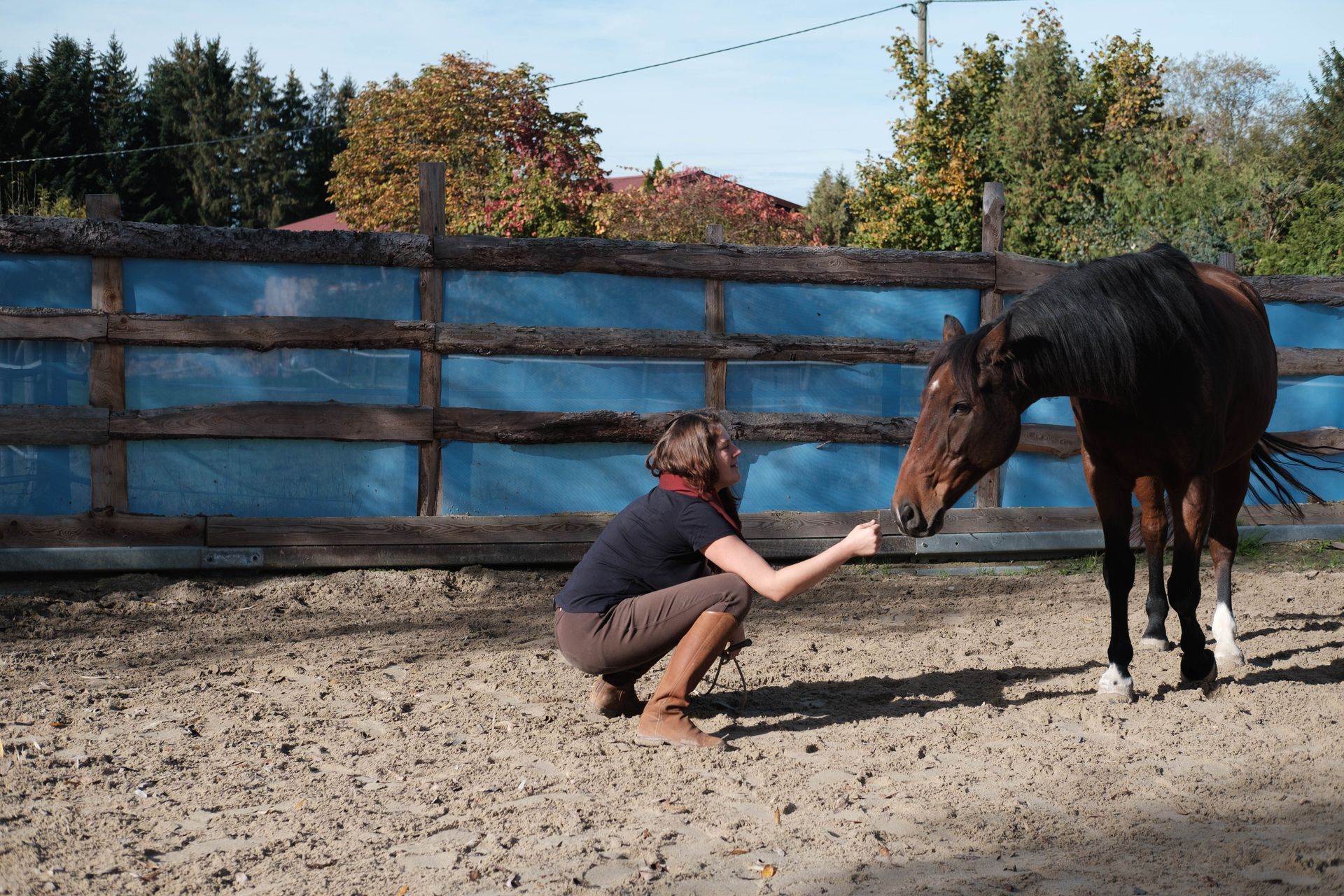 "Wir sind nicht geritten, sondern es ging darum, die eigene Art und Weise auf Menschen oder in dem Fall das Pferd zuzugehen zu verstehen. Ich habe auch keine Vorerfahrung mit Pferden, konnte aber etwas über meine Ausstrahlung und innere Ausrichtung lernen, weil meine Körpersprache für das Pferd spürbar war. Und außerdem konnte ich mich im Kontakt mit dem Pferd selbst intensiv spüren.