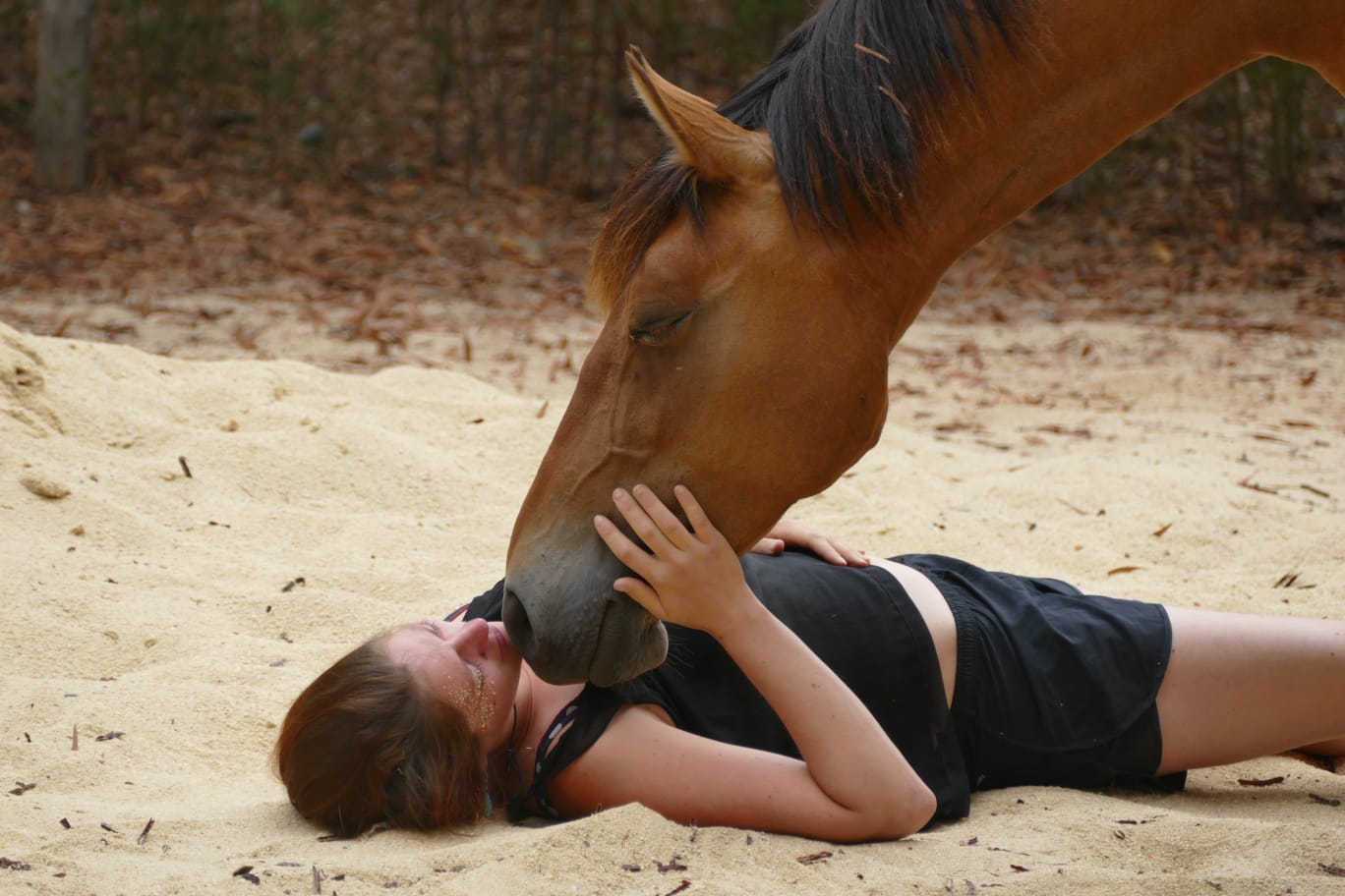 Das Pferd als Fluchttier ist extrem sensibel für seine Umwelt und nimmt uns Menschen genau wahr. Daher sind Pferde fantastische Lehrer darin, im Moment präsent zu sein und den eigenen Körper bewusst wahrzunehmen.